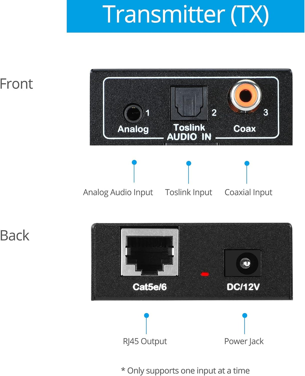 • Extend Coaxial or Optical Toslink Audio signals up to 984ft (300m) over CAT5e/6/7 cable