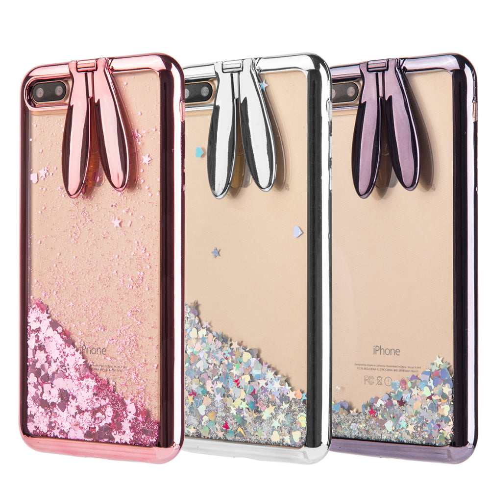 Electroplated Quicksand Liquid Glitter TPU Phone Cover with Rabbit Ears Style: