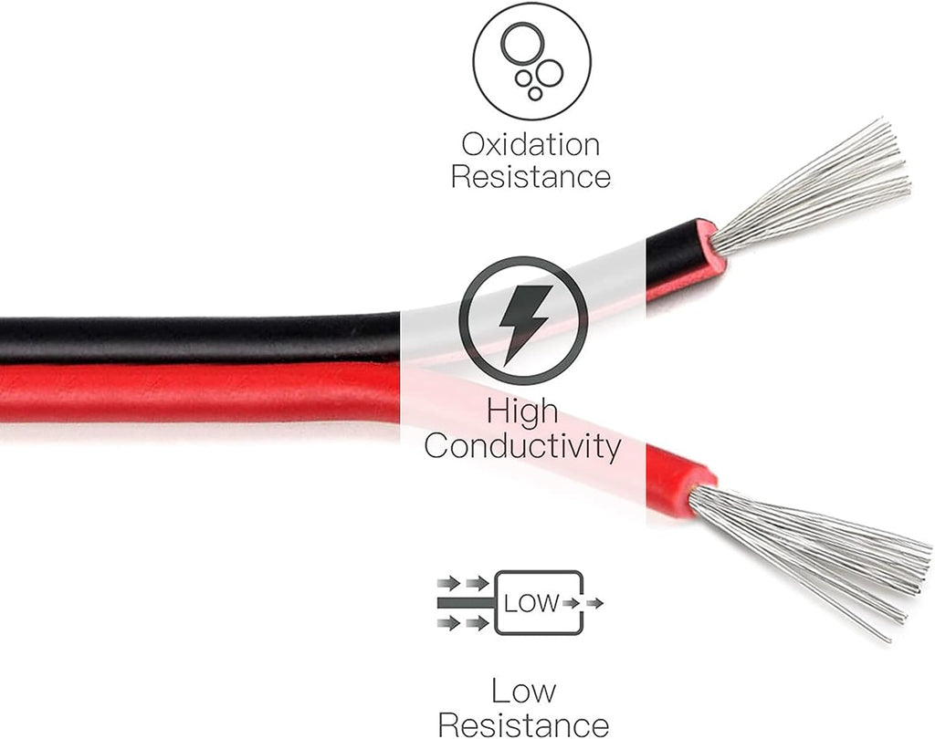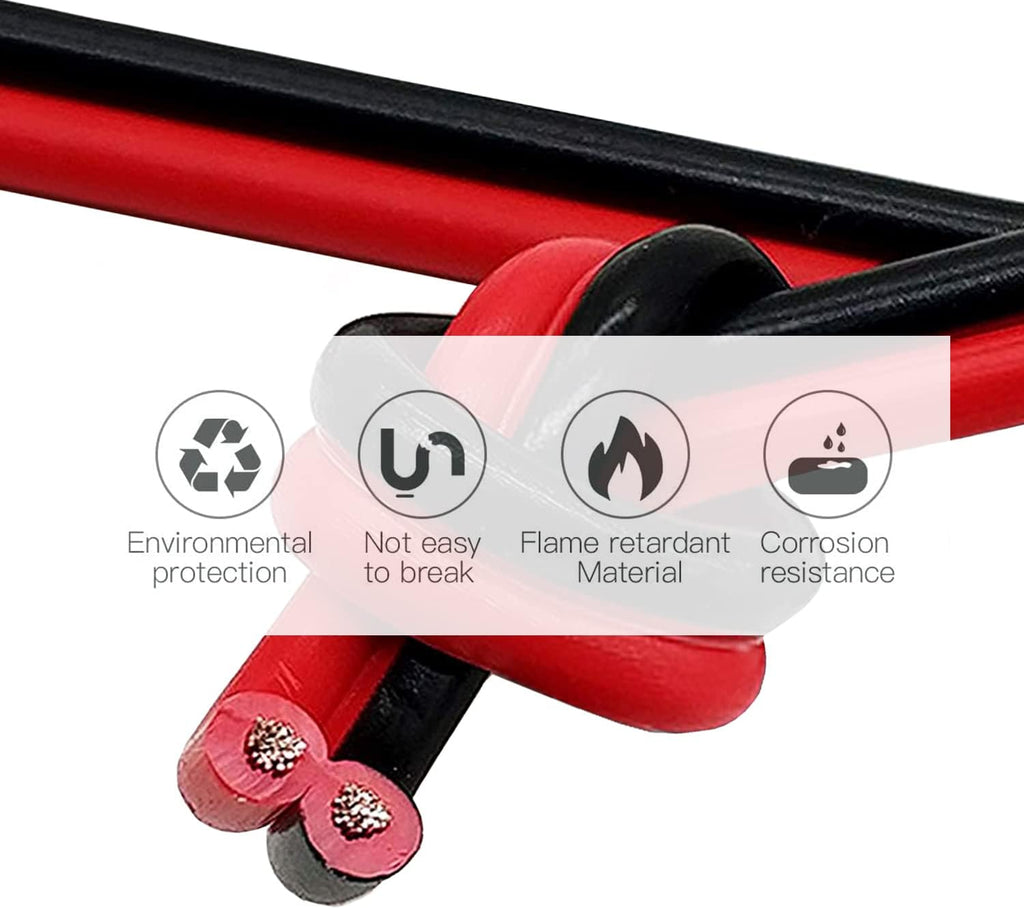 SimplyASP Tech 20 AWG 2-Pin, 6ft Extension Wire LED Strips 3528/5050, Red/Black