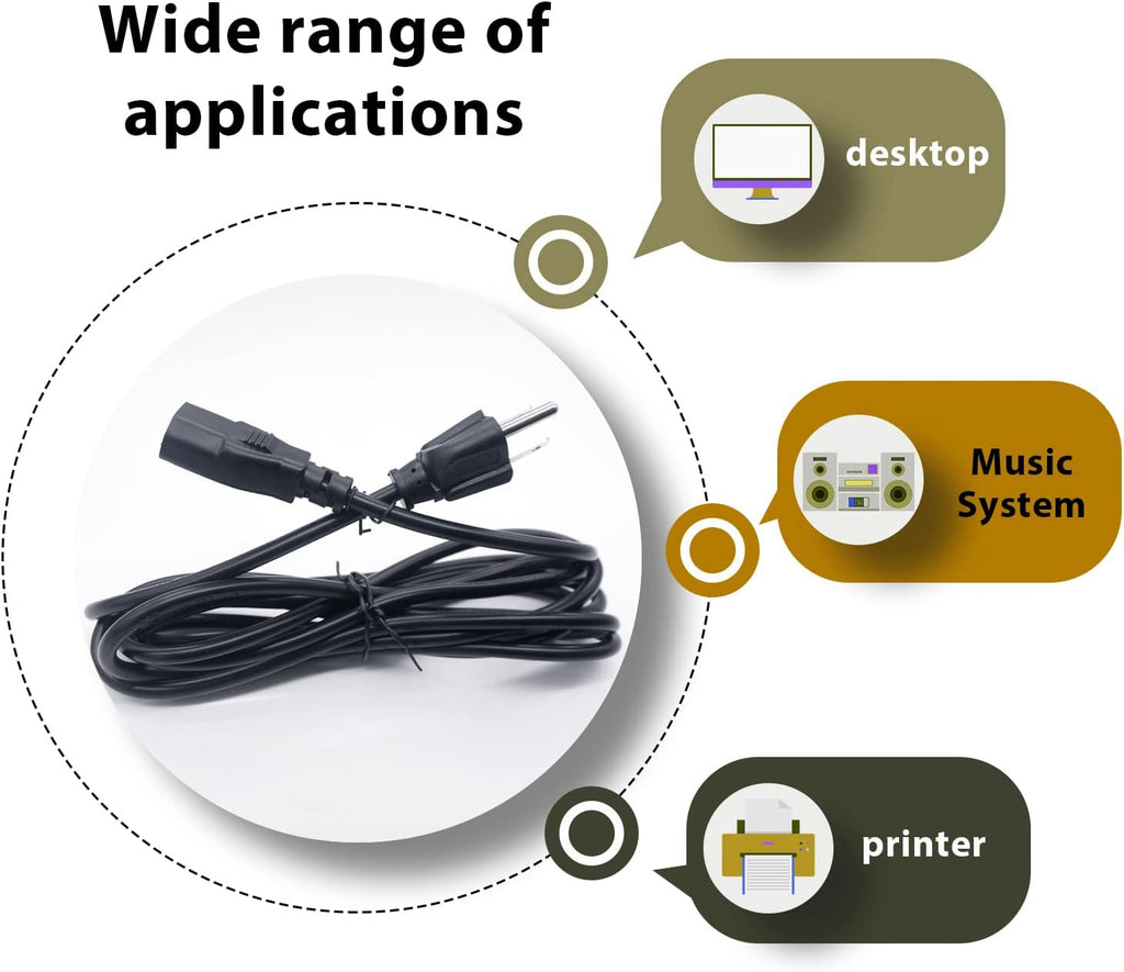 This power cord is the last piece of the puzzle to getting your computer, printer or electronic device up and running. Featuring a four-foot length, this cable is ideal for any system, even if the system is a little ways from the closest outlet or power strip. This computer power cord is black so that you can coordinate with your system for better aesthetic viewing.